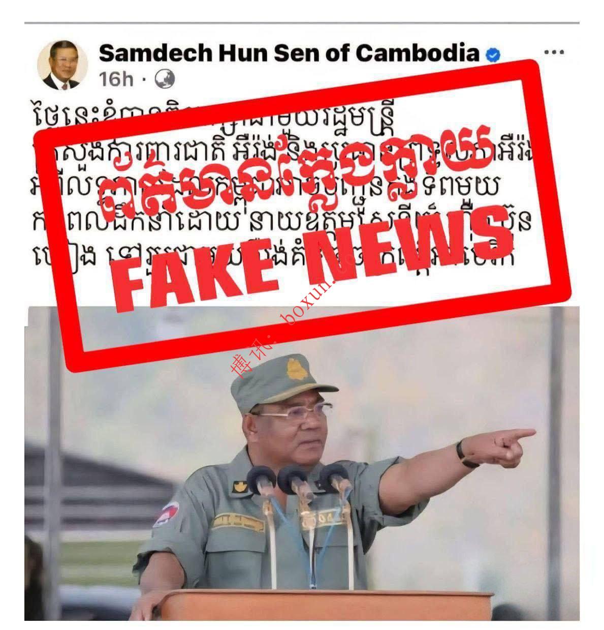 相关虚假信息甚至捏造称,由 Hing Bun Heang(兴文贤)上将率领柬埔寨王家军前往支援伊朗。对此,谢提乐强调,上述内容完全属于恶意编造的谣言,与事实严重不符。