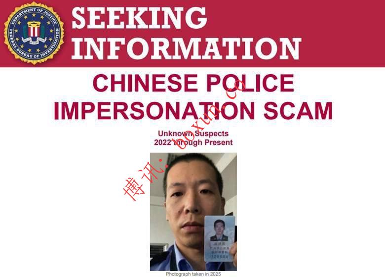 美国联邦调查局(FBI)3月18日发布通告,正在寻找一名涉嫌参与针对中国留学生诈骗案件的男子,呼吁公众提供线索。